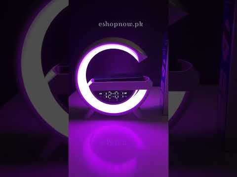 Multifunction Digital Alarm Clock Blue Tooth 10W Wireless Charger RGB Colorful Ambient Night Light G Shape Wireless Speaker